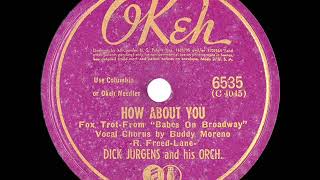 From the mid-'30s to the early '40s, the Jurgens band played extended residences at such venues as the Casino Ballroom on Catalina Island in southern California, the Elitch Gardens in Denver, and the Aragon and Trianon ballrooms in Chicago, all bastions of sweet swing music. By 1938, Jurgens was recording for the Vocalion label, and in 1939 he began to make some impact as a record seller, first getting into the rankings on the #Your Hit Parade radio show that October with It's a Hundred to One You're in Love With Me (co-written by Jurgens and band member Ronnie Kemper), which featured Howard on vocals. Jurgens, Howard, and band arranger Lew Quadling collaborated on Careless, which they submitted to the Irving Berlin publishing company. The story goes that Berlin didn't like the lyrics, but hesitated to offend a major bandleader, so he wrote new words without taking credit. The Jurgens band recorded the song with Howard on vocals, but their version was outpaced by a cover recorded by the vastly more popular Glenn Miller -- not the last time such a thing would occur -- and no problem for Jurgens, who pocketed the publishing income. Meanwhile, Jurgens was scoring his biggest hit yet with a song he did not write, In an Old Dutch Garden (By an Old Dutch Mill), which, with another Howard vocal, spent 11 weeks on the hit parade starting in February 1940. Howard then left the band to start his own outfit, but Jurgens found a worthy replacement in Harry Cool, who sang on the band's next hit parade entry, A Million Dreams Ago (music and lyrics by Jurgens, Howard, and Quadling) in October. (The single also marked the band's switch to OKeh Records.) The same month, Jurgens got into the best-seller charts with an instrumental recording of another song he had co-written, Elmer's Tune (music also by Elmer Albrecht). Once again, Glenn Miller outdid him, taking a vocal recording that featured Ray Eberle and the Modernaires all the way to number one, and, once again, Jurgens had no reason to complain; he had even responded to Miller's request by hiring Sammy Gallop to write lyrics. He and Harry Cool were back in the hit parade in November with The Bells of San Raquel, and the band scored another chart entry in April 1942 with Happy in Love (which marked a switch to Columbia Records). But Jurgens' biggest song on #Your Hit Parade came with One Dozen Roses (music by Jurgens and Walter Donovan, lyrics by Roger Lewis and Country Washburn), which was sung by Buddy Moreno. Premiering on the radio show in May 1942, it rose to number one in July and stayed on the chart for 14 weeks.